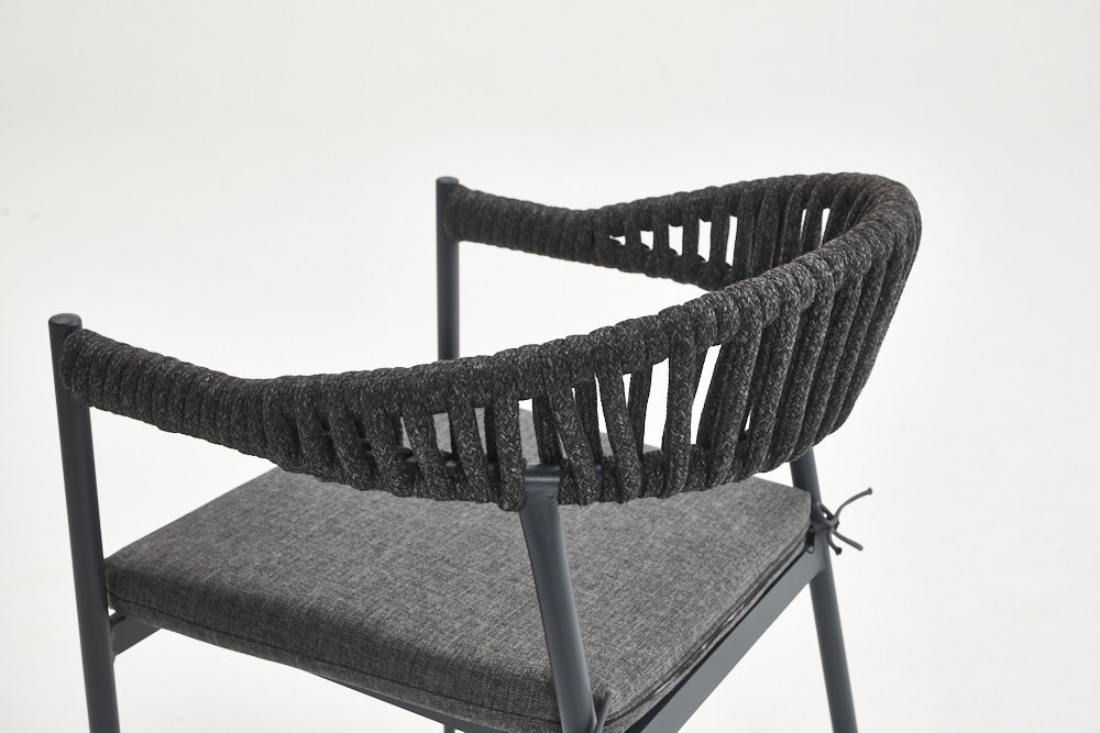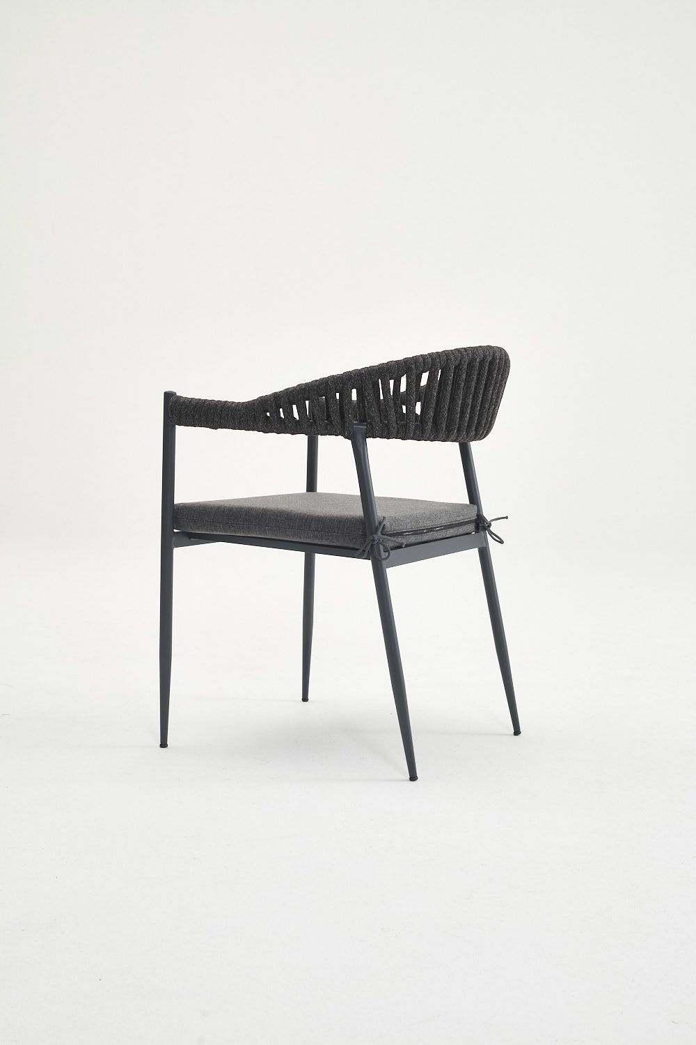 Adel Sessel mit Aluminiumrahmen, gestrickt mit Seil, geeignet für den Außenbereich. Der Adel -Sessel ist für den Einsatz unter allen Außenbedingungen geeignet und wird mit einer rostfreien, starken Aluminiumrahmen Struktur hergestellt.